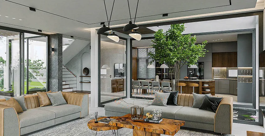 Hiện đại là phong cách phổ biến trong thiết kế nội thất ở bất kỳ vật liệu, phân khúc nào. Vẻ đẹp của sự sang trọng, phóng khoáng, tiện nghi là những điều thu hút khách hàng. Đồng Gia đã triển khai nhiều dự án nội thất gỗ óc chó phong cách hiện đại, dẫn đầu xu hướng thiết kế phòng khách đẹp 2025.